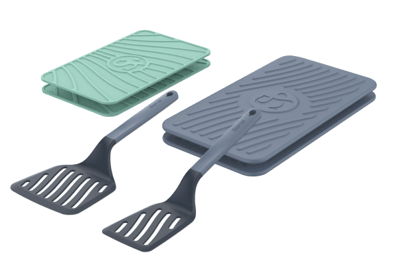 Serving dinner is a breeze with the Serve & Store Kit. Use our specially designed spatulas and trivets to plate your favorite meals while protecting your countertops and table. Finished eating? Pop the lid on the pan and store leftovers right in your fridge for easy meals later.