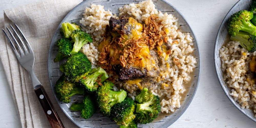 with Cheddar Cheese, Brown Rice, and Broccoli